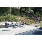 La structure du canapé est en aluminium ce qui le rend très résistant aux conditions météorologiques.