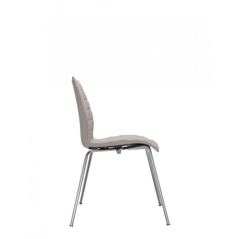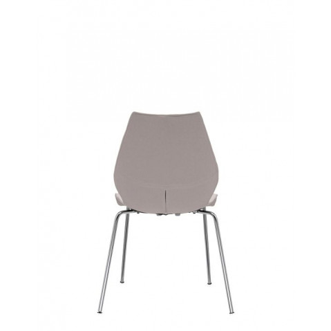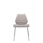 La monocoque assise/dossier en polypropylène est fixée sur une structure en acier chromé. Désormais, pour encore plus de confort la gamme s'agrandit avec Maui Soft, la coque en polypropylène est rembourrée et revêtue luxueusement d'un tissu Trevira.