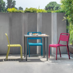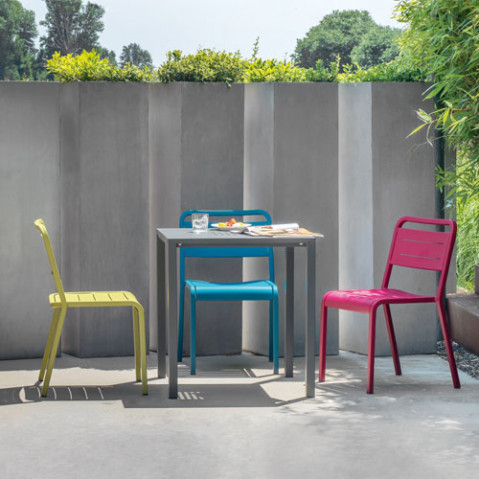 La collection Urban comprend chaises, fauteuils et tables carrées ; elle fait le bonheur des terrasses d'hôtels, de restaurants, des collectivités et des particuliers.
