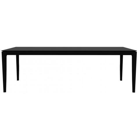 La table de la même gamme ne déroge pas à la règle avec son piétement et plateau en chêne massif noir et son style minimaliste.