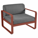 Fauteuil BELLEVIE de Fermob, coussin gris graphite, Ocre rouge