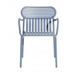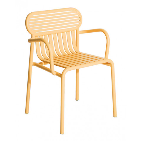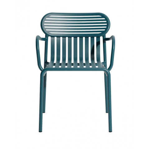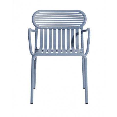 La gamme Week-end est marquée par un design contemporain et dynamique ; le jeu graphique des lattes horizontales ou verticales apporte une grande légèreté et rappelle les rayures fréquemment utilisées dans le textile balnéaire.