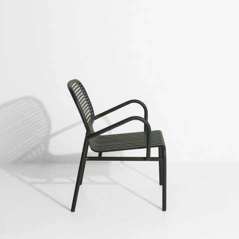 Le fauteuil Week-end est fabriqué en aluminium et peint à la poudre époxy, conçue pour un usage extérieur, elle garantit une protection optimale contre les UV et les agents atmosphériques.