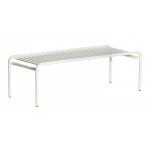 La table basse longue Week-end est fabriquée en aluminium et peinte à la poudre époxy, conçue pour un usage extérieur, elle garantit une protection optimale contre les UV et les agents atmosphériques.