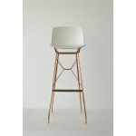 Dessinée par le designer Marcel Wanders pour Magis, le tabouret Troy est composé d'une structure en tube d'acier plaqué or ou cuivre ou verni en polyester et d'une assise en polypropylène.